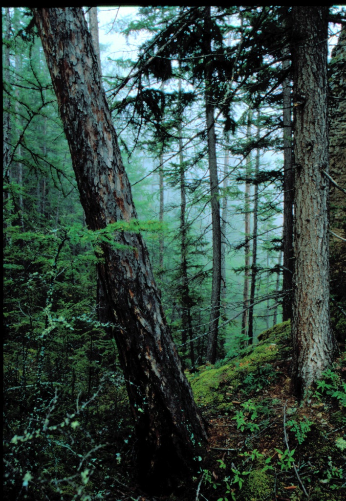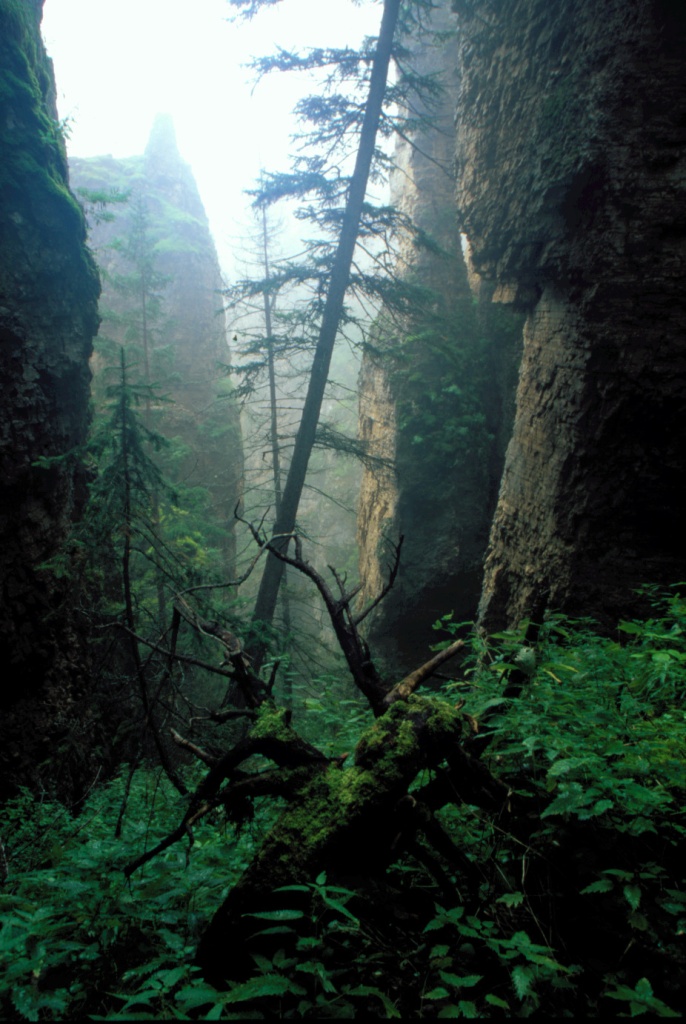 Растительный мир парка богат и разнообразен. Территория относится к подзоне средней тайги, сложенной светлохвойными лесами. Мы привыкли, что лиственничная (Larix cajanderi) тайга обычно монотонно однообразна, но наличие скал, сложенных карбонатными породами, глубоких распадков и тенистых расщелин придают своеобразие растительному покрову парка и обеспечивают его флористическое богатство.